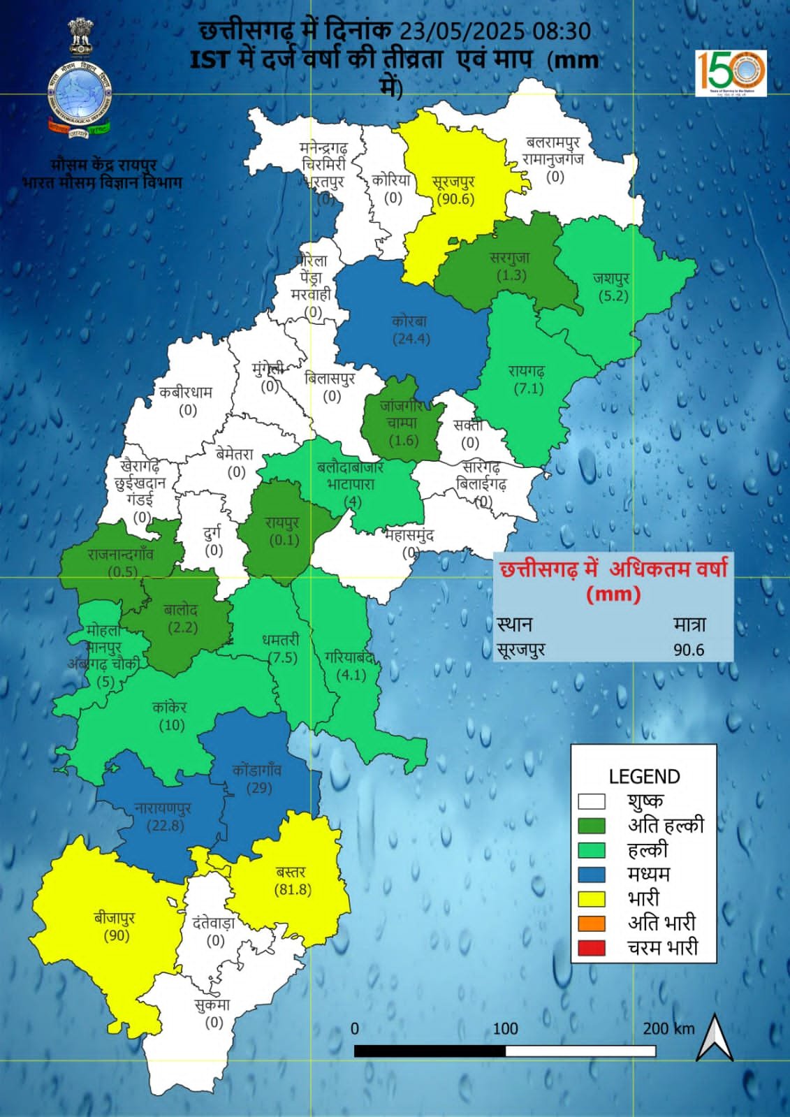 - बस्तर, रायपुर, दुर्ग संभाग में गरज-चमक के साथ छींटे