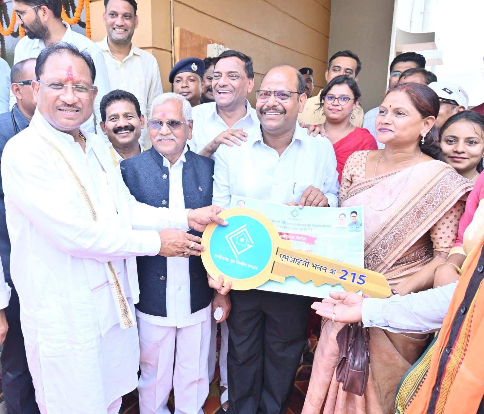 इसके पश्चात मुख्यमंत्री मुरमुंदा पहुंचे, जहां उन्होंने अटल आवास योजना के अंतर्गत निर्मित 226 आवासों का लोकार्पण किया। मुख्यमंत्री ने अटल आवास क्रमांक 226 के हितग्राही श्री तुषार को अपने हाथों से चाबी सौंपी और उन्हें गृह प्रवेश कराया। मुख्यमंत्री ने इस मौके पर अन्य हितग्राहियों को भी उनके मकान की चाबी सौंपते हुए उन्हें बधाई और शुभकामनाएं दी। इस अवसर पर उपमुख्यमंत्री श्री विजय शर्मा सहित अन्य जनप्रतिनिधिगण भी उपस्थित रहे।