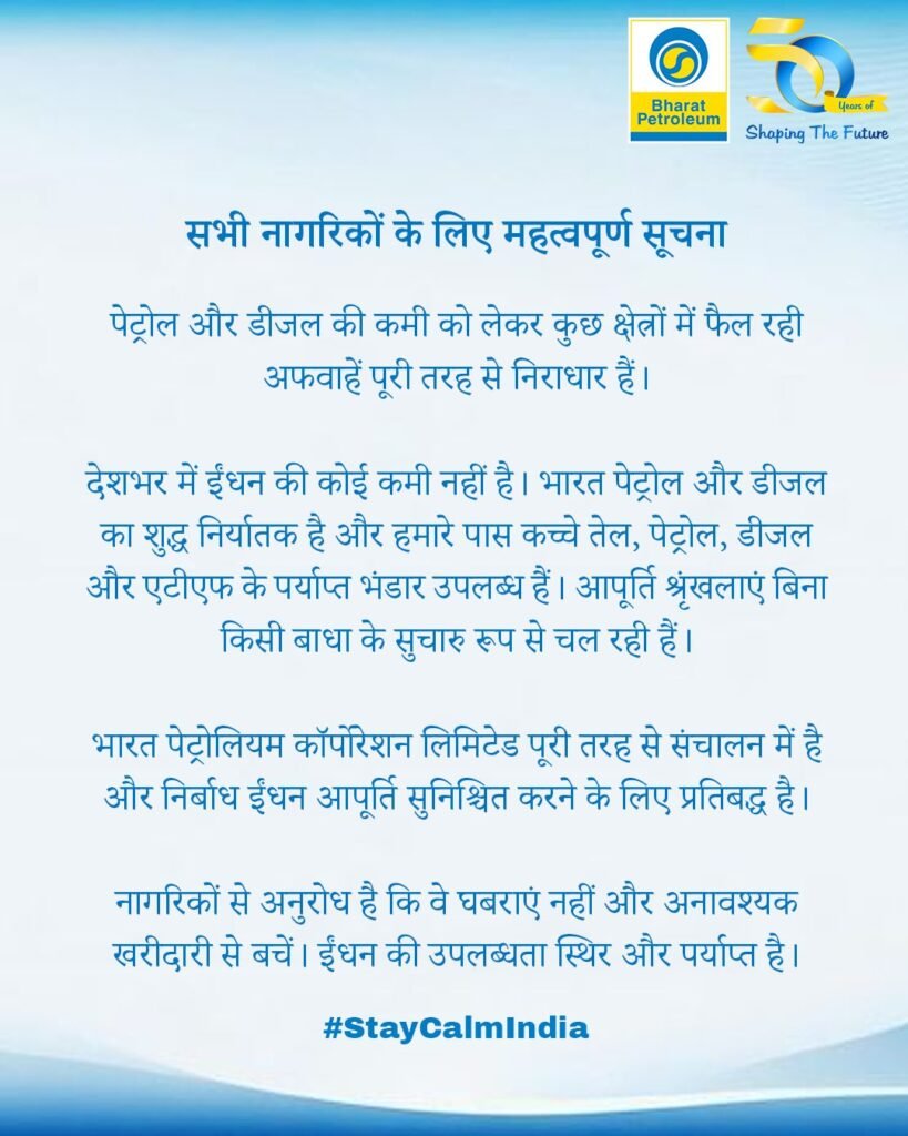 सरकार ने नागरिकों से अपील की है कि वे ऐसी अफवाहों पर ध्यान न दें और न ही इन्हें आगे फैलाएं। साथ ही, अनावश्यक या घबराहट में गैस सिलेंडर की बुकिंग करने से भी बचें।