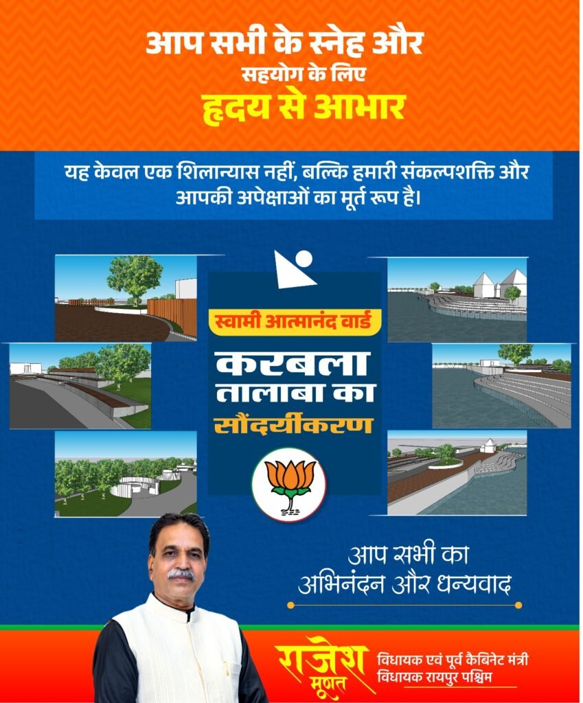 करबला तालाब का नाम स्वामी आत्मानंद करने की मांग, मूणत बोले – शहर के बीच स्थित तालाब को मरीन ड्राइव की तरह विकसित किया जाएगा